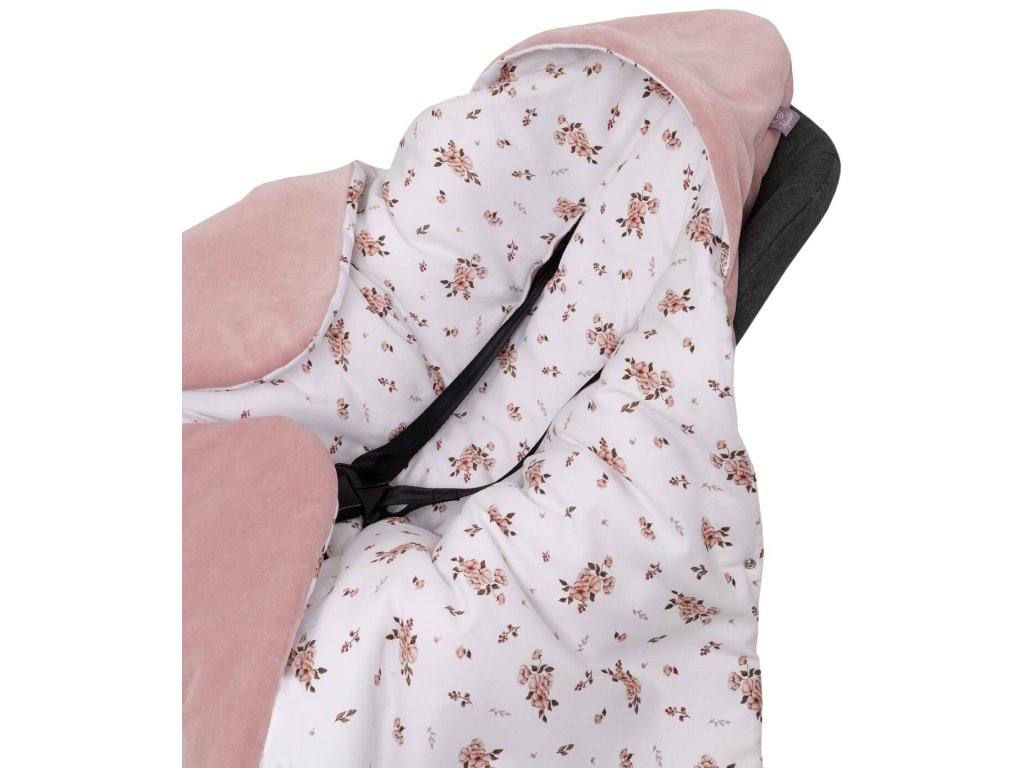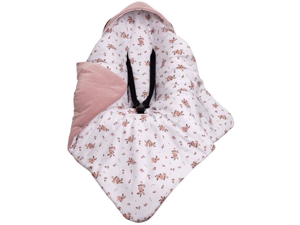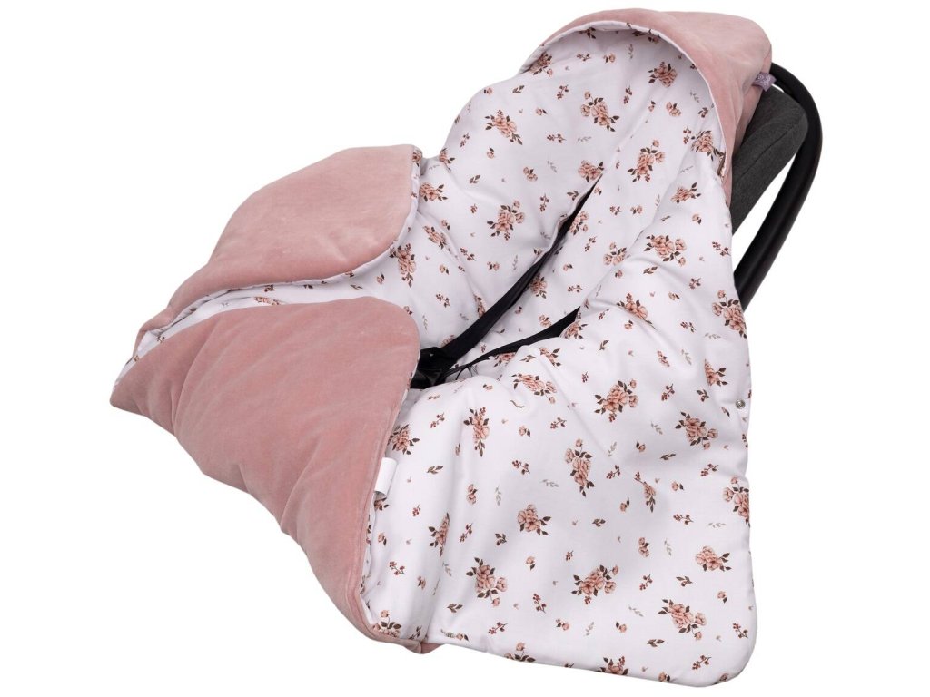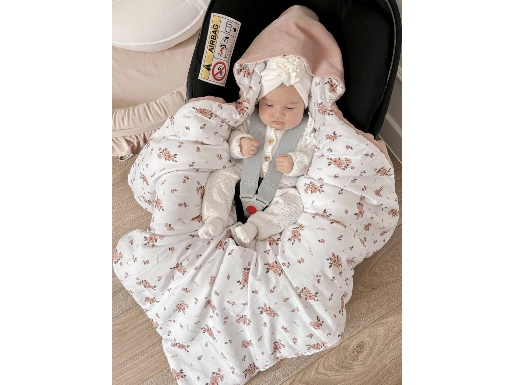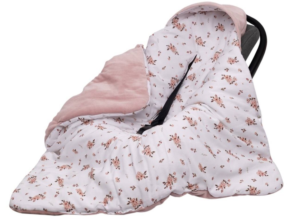 Zateplená deka s kapucí na sedák VELUR je měkká, jemná a extrémně teplá přikrývka pro miminko, ideální na procházky, cestování i každodenní použití. Díky praktické kapuci chrání dětskou hlavičku před chladem a větrem, zapínání na patentky funguje i jako zavinovačka a zabraňuje sklouznutí. Deka je vybavena otvory pro 3- a 5bodové bezpečnostní pásy, proto je vhodná do autosedačky, kočárku i nosítka. Vyrobena z kvalitního bavlněného veluru a saténové bavlny s antialergickou silikonovou výplní – je bezpečná, hřejivá a příjemná na dotek. Skvělý tip na praktický dárek pro novorozence. Certifikát STANDARD 100 by OEKO-TEX®.