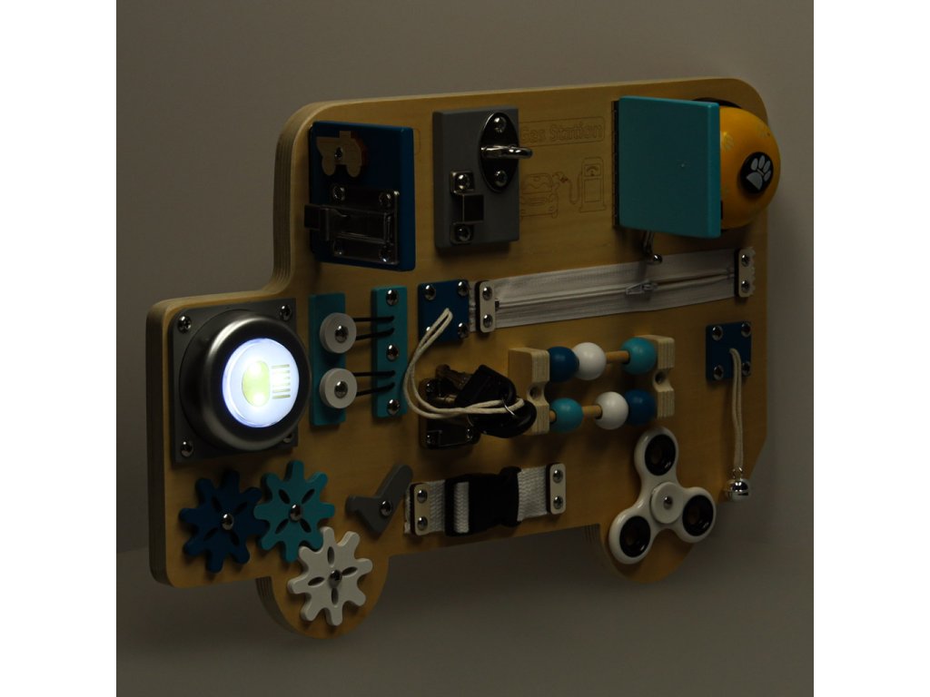 Dřevěná senzorická tabule - Modrý autobus