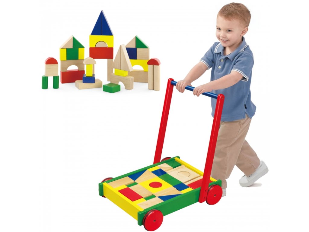 Funkční hračka pro nejmenší pomůže dětem při jejich prvních krůčcích jako opora a zároveň ji mohou využít pro zábavu, až už je budou bolet nožky a chůze je unaví. Sada obsahuje 36 barevných bloků, ze kterých bude vaše dítě stavět nádherné stavby. Kromě toho jsou kola vozíku vybavena protiskluzovými gumami, které chrání dítě před nekontrolovaným uklouznutím a zároveň chrání podlahu před poškrábáním. Celý produkt byl vyroben z lakovaného dřeva, natřený bezpečnými barvami v živých odstínech, které uspokojí každého uživatele a poskytnou spoustu zábavy ze zábavy.