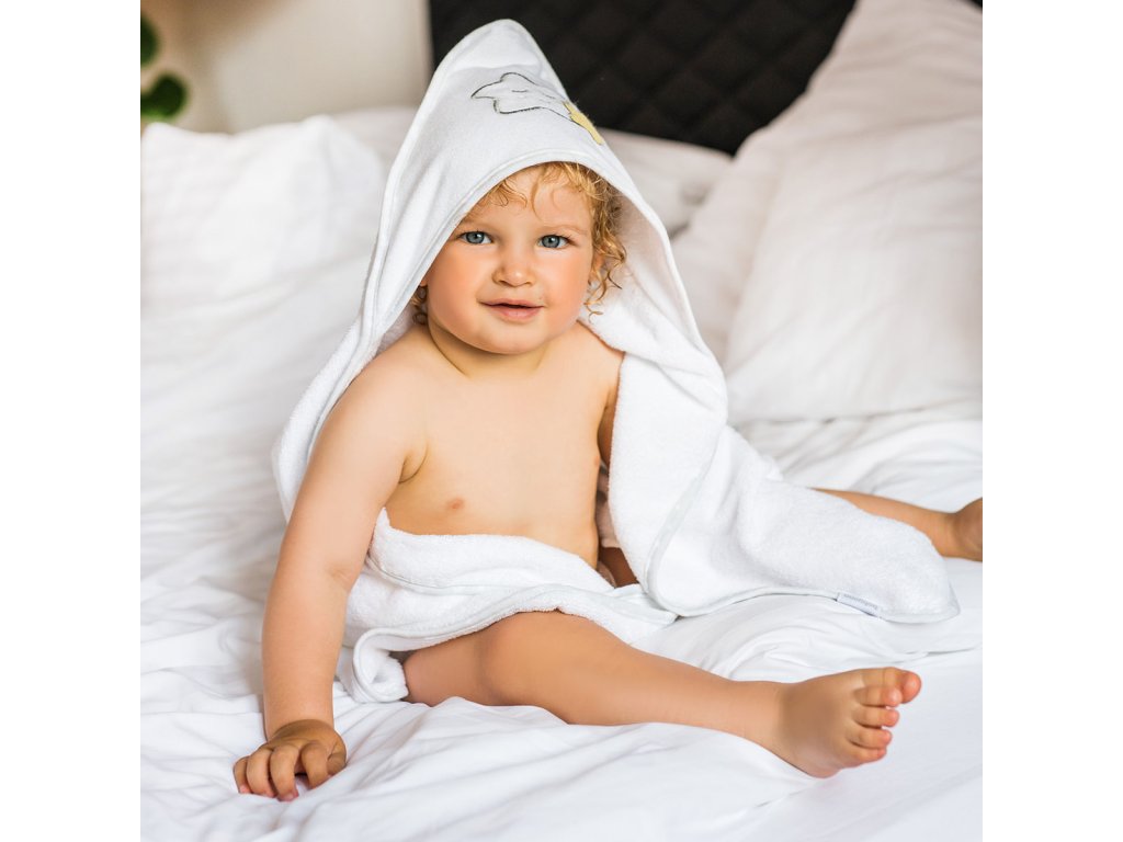 Koupací osuška s kapucí je nenahraditelná již od prvního koupání. Vyrobeno z kvalitní, nadýchané a měkké, 100% froté bavlny. Na kapuci byla našita univerzální a jemná aplikace, díky které je osuška vhodná pro chlapce i dívku. Náš ručník s kapucí poskytuje účinnou ochranu před chladem pro jemnou pokožku vašeho dítěte.