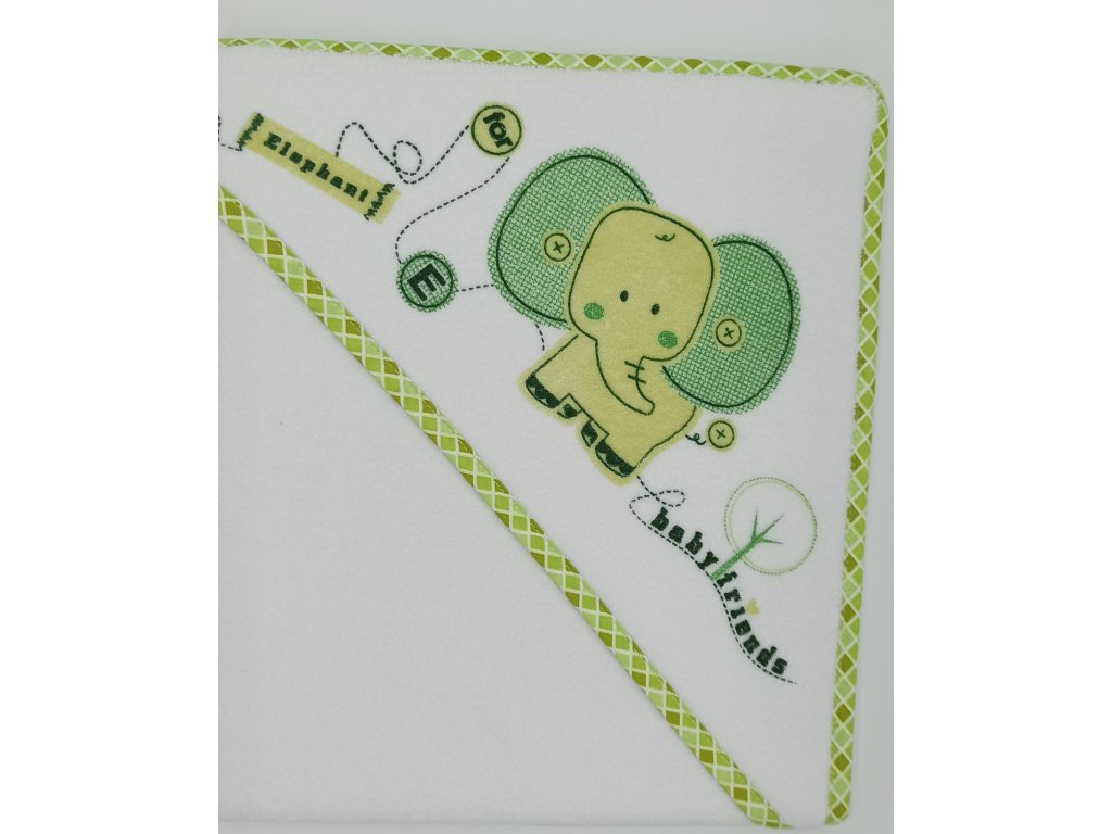 Ručník je vyroben z froté bavlny, díky čemuž dokonale absorbuje vodu, aniž by dráždil jemnou pokožku dítěte.