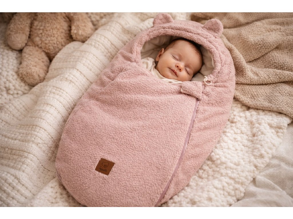 Vnitřek spacáku je vyroben z měkkého bavlněného veluru, který je šetrný k dětské pokožce. Vnější vrstva je z elegantní boucle tkaniny s beránčí strukturou. Výplň je antialergická silikonová netkaná textilie, všitá do švů, která zabraňuje jejímu sklouznutí během praní a používání.