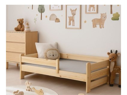 Dětská postel s ochrannou bariérkou, která je navržena tak, aby zajistila...