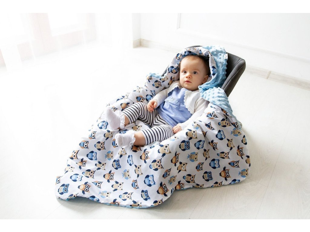 Měkká a hřejivá přikrývka s kapucí je ideální do autosedačky, nosiče nebo kočárku. Chrání miminko před chladem, větrem a mrazem, snadno se zapíná na patentky a díky otvorům pro 3- a 5bodové pásy je maximálně bezpečná. Perfektní jako zavinovačka pro podzim a zimu.