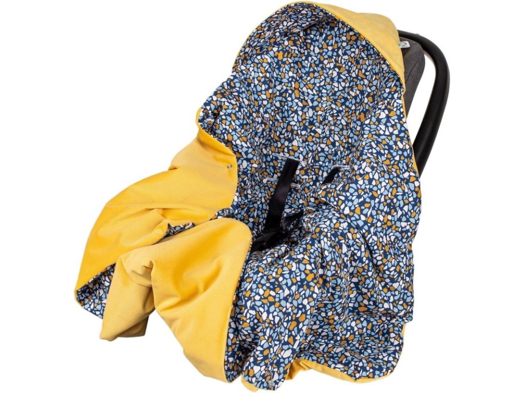 Přikrývka s kapucí do kočárku a autosedačky Velvet – oblázky/ hořčice