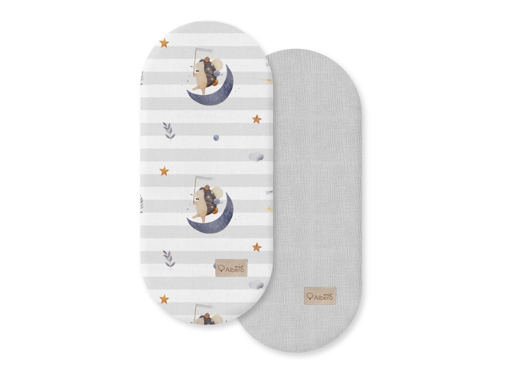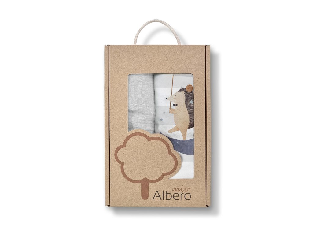 Dopřejte svému miminku pohodlí s 2-balením měkkých a jemných prostěradel do korbičky kočárku od značky Albero Mio. Jedno prostěradlo je ušité ze saténové bavlny, s ekologickým potiskem, který je bezpečný pro nejmenší. Druhé prostěradlo je vyrobeno z bavlněného mušelínu (100% bavlna), který je měkký, jemný a prodyšný. Bavlněný mušelín je příjemný k dětské pokožce, odolný a s každým praním měkčí.