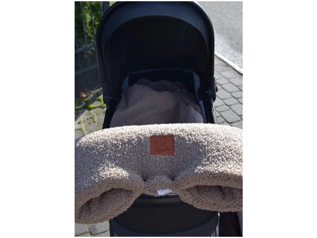 Rukávník z látky LAMB BOUCLE je elegantní a hřejivý doplněk ke kočárku, který chrání ruce rodičů před chladem během zimních procházek. Vyrobený z jemné a na dotek příjemné boucle tkaniny s antialergickou silikonovou výplní, poskytuje maximální pohodlí, nadýchanost a teplo. Praktické zapínání na patentky umožňuje snadné a pevné uchycení k rukojeti kočárku, takže ruce zůstávají chráněny a přístup je vždy rychlý a pohodlný.