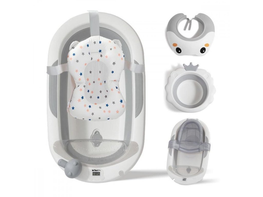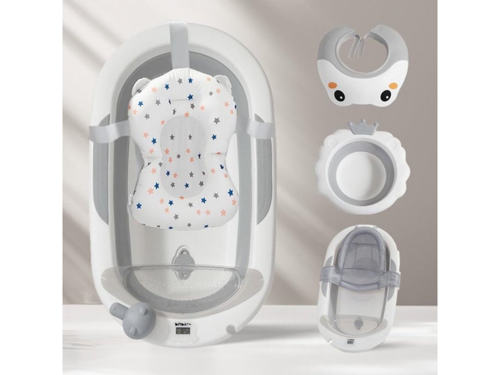 Dětská skládací vana s příslušenstvím / šedá